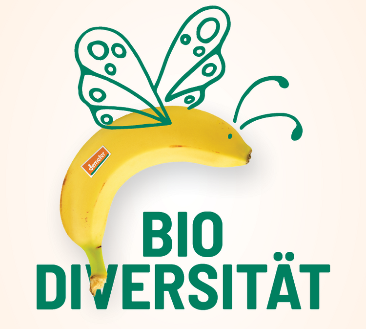 Demeter-Bananen bedeuten biologische Vielfalt! In Demeter-Bananenplantagen wachsen nicht nur die leckeren gelben Früchte. Sie bieten auch Tausenden von Lebewesen in und über der Erde einen Lebensraum. Denn Demeter-Landwirt*innen versprühen keine Pestizide, sondern sorgen auf natürliche Weise für Bodenfruchtbarkeit und widmen mindestens 10 Prozent ihrer Fläche der Artenvielfalt. Demeter-LandwirtInnen müssen zudem aktiv Vorsorge treffen, um ihre Flächen vor der Abdrift von chemischen Pflanzenschutzmitteln von Nachbarflächen zu schützen - auf Bananenbetrieben werden oft Baumstreifen zum Schutz gepflanzt.