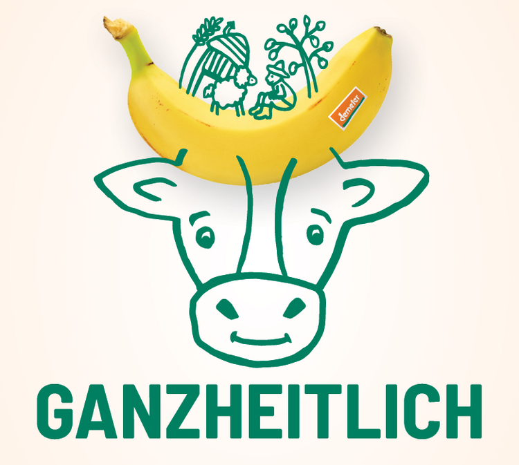 Demeter-Bananen werden ganzheitlich produziert! In den Betrieben gilt: Menschen, Tiere, Pflanzen, Erde bilden eine große, solidarische Einheit – getragen von Verständnis für die Natur. Mit Einbindung von Tierhaltung, Artenvielfalt und einer Kreislaufwirtschaft, die möglichst selbst produziert, was sie verbraucht.