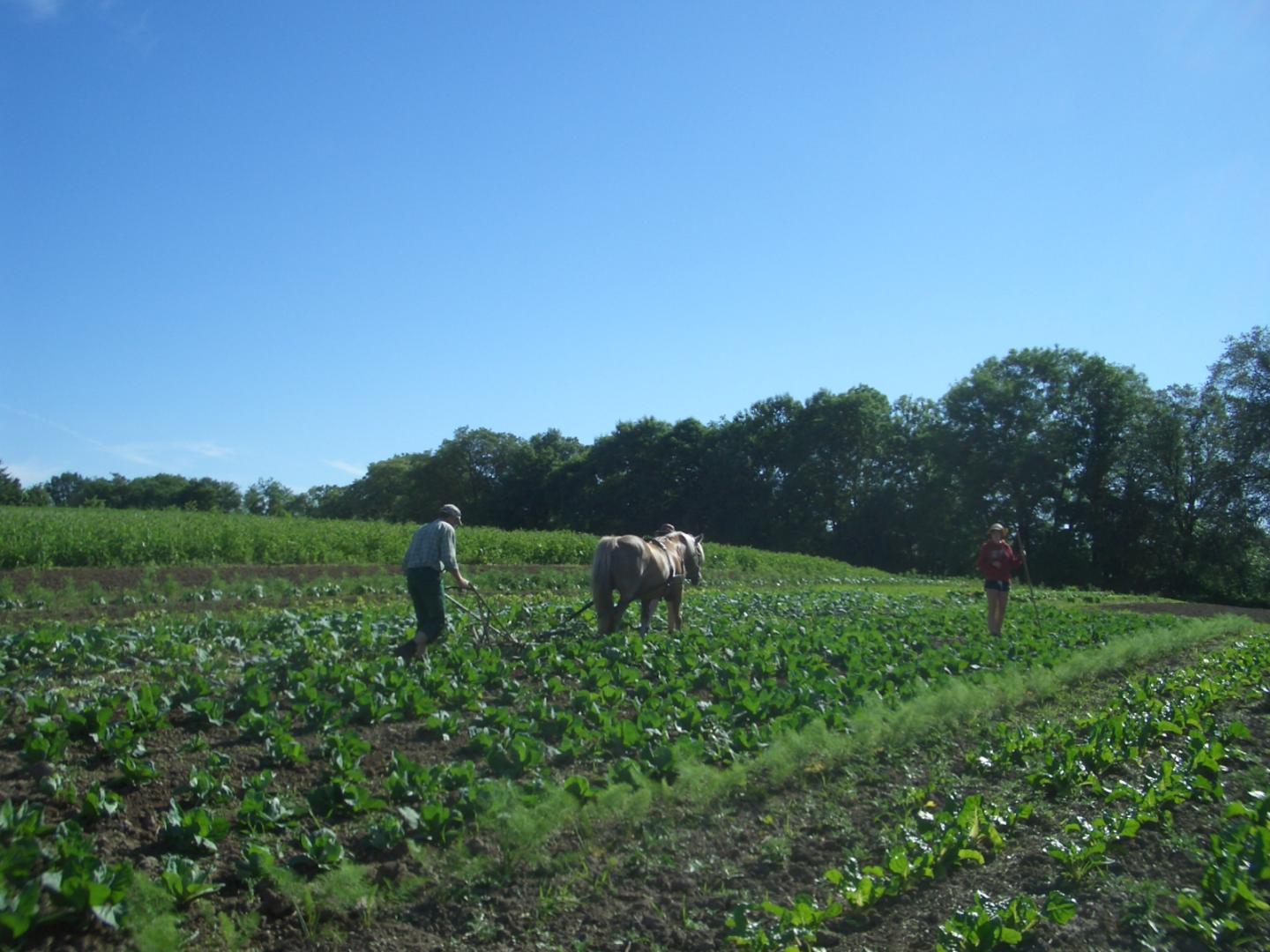 Auf fast drei Hektar werden verschiedene Gemüse- und Obstsorten angebaut, im Sommer auch Blumen und Kräuter. Ein Großteil unserer Produkte wird an Kollegen vermarktet, die auf Märkte fahren oder Abokisten packen.