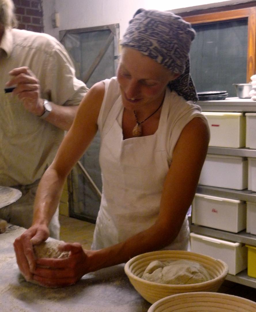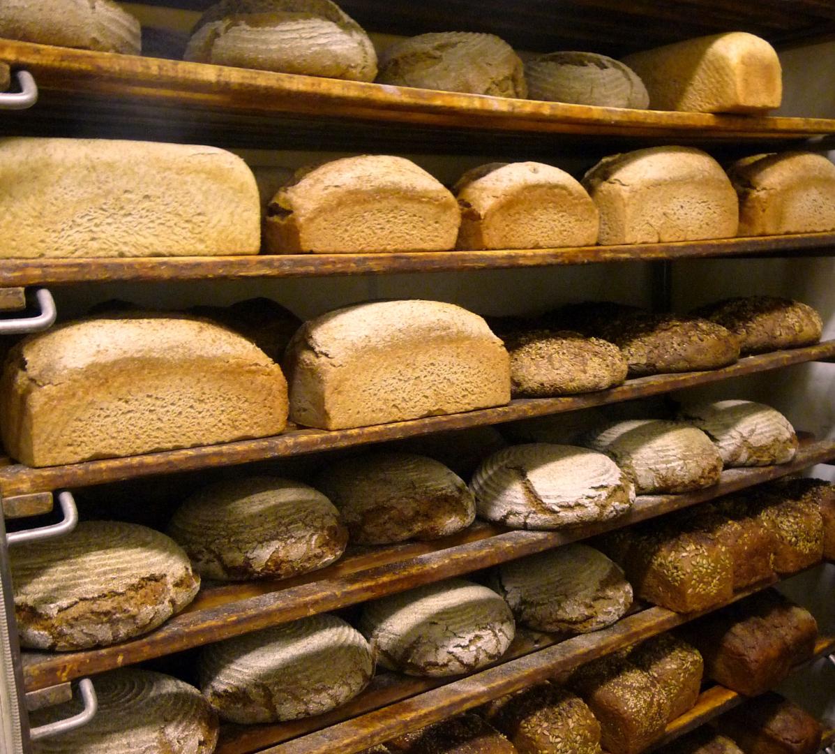 Zweimal in der Woche wird in der Backstube leckeres Vollkornbrot gebacken. Der Holzbackofen gibt dem Brot eine ganz besondere Note. Gebacken wird reines Dinkelbrot, reines Roggenbrot und Roggen-Weizenmischbrote mit unterschiedlichen Körnern (Sonnenblumen, Sesam, Mehrkorn).