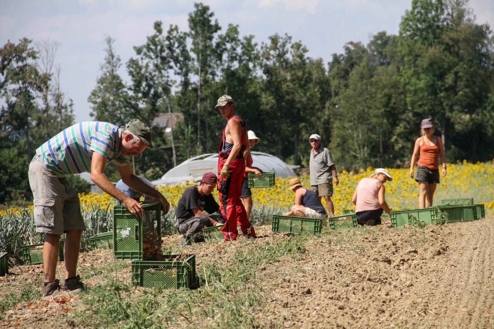 In der Gärtnerei arbeiten 5 Fachkräfte und 4 Auszubildende zusammen mit 14 Menschen mit Hilfebedarf, die je nach Fähigkeiten mithelfen bei der Ernte, der Kompostpflege, beim Pflanzen, Unkraut jäten, Hacken, und im Winter bei der Aufbereitung des Lagergemüses.