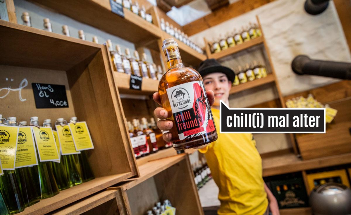 Die Geschichte zu meinem Unternehmen begann schon, als ich noch klein war. Damals war ich oft bei meinen Ur-Großeltern zu Besuch und hatte sogar ein eigenes kleines Gemüsebeet. Wir haben gemeinsam geerntet und gekocht und so kam meine Liebe zu „ehrlichen“ Lebensmitteln. Zu Weihnachten 2018 bekam ich von meinen Eltern eine kleine Ölpresse geschenkt. Und nachdem die Familie mit dem ersten Öl versorgt war, ging es dann weiter mit den Touristen. Nicht wenig später stand das erste meiner Öle im nächstgelegenen Hofladen.