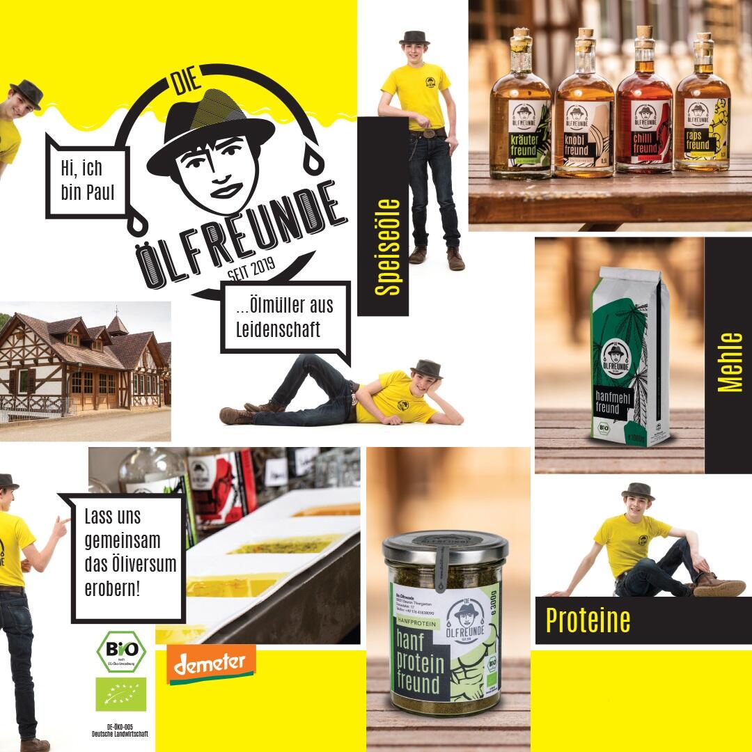 In diesem Tun möchte ich die deutsche Landwirtschaft unterstützen und beziehe dafür ausschließlich heimische Saaten von Landwirten aus meiner Region und verarbeite diese in meiner eigenen Ölmühle weiter. Daraus entstehen dann die hochwertigen Produkte: Speiseöl, Mehl, Protein und Tierfutter. Qualität und Geschmack stehen dabei an oberster Stelle. Mein Hauptfokus liegt aktuell auf dem Speiseöl. Dieses wird schonend kaltgepresst und mit Kräutern und Gewürzen verfeinert, sodass ein kräftig-guter Geschmack entsteht. Bei der ganzen Wertschöpfungskette achte ich darauf, dass jeder seinen fairen Anteil erhält. In den Unternehmensentscheidungen ist Mutter Natur stets mit einbezogen und ich hoffe, dass sie mit einem Lächeln auf meine Ölmühle scheint.