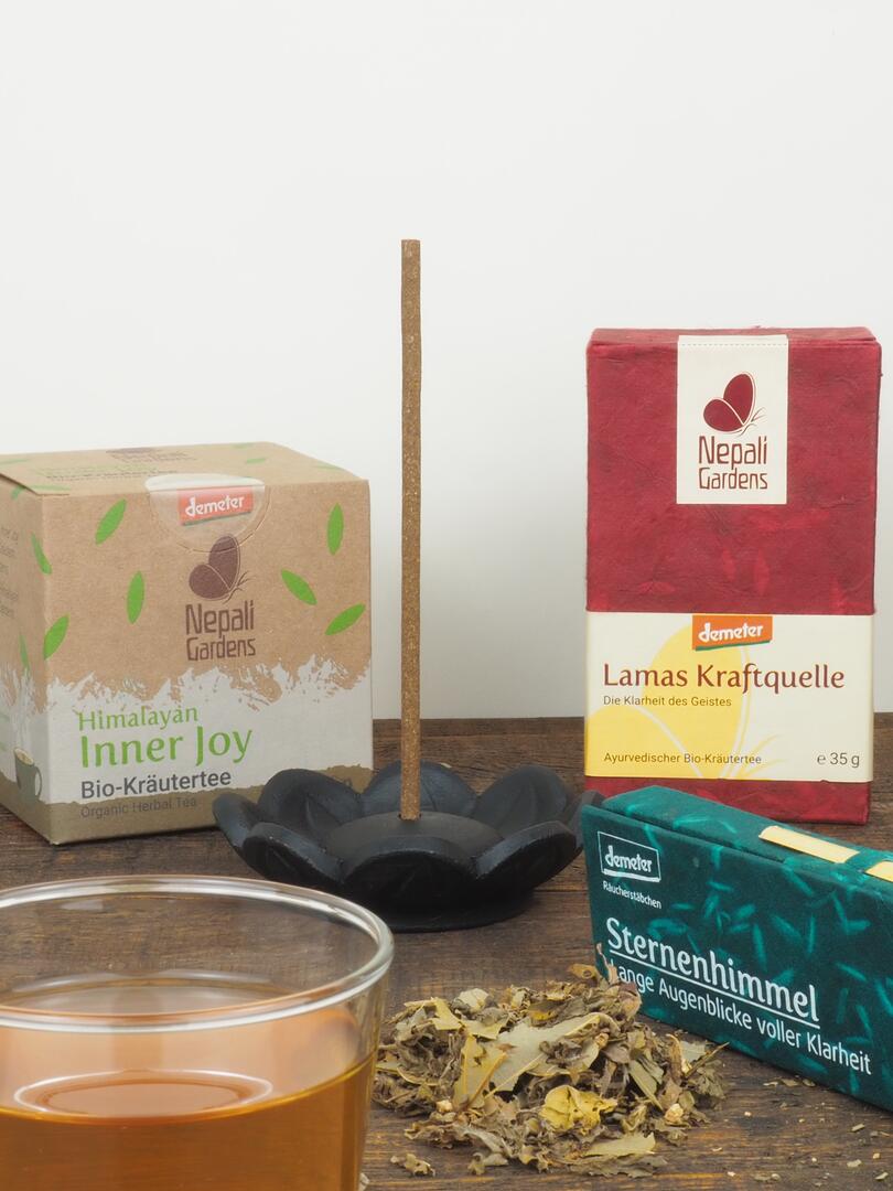 Emport ist Partner der ersten Demeter-Farm Nepals und Inverkehrbringer der Kräutertees und Räucherstäbchen aus dem unterstützenswerten Projekt am Fuße des Himalaya.