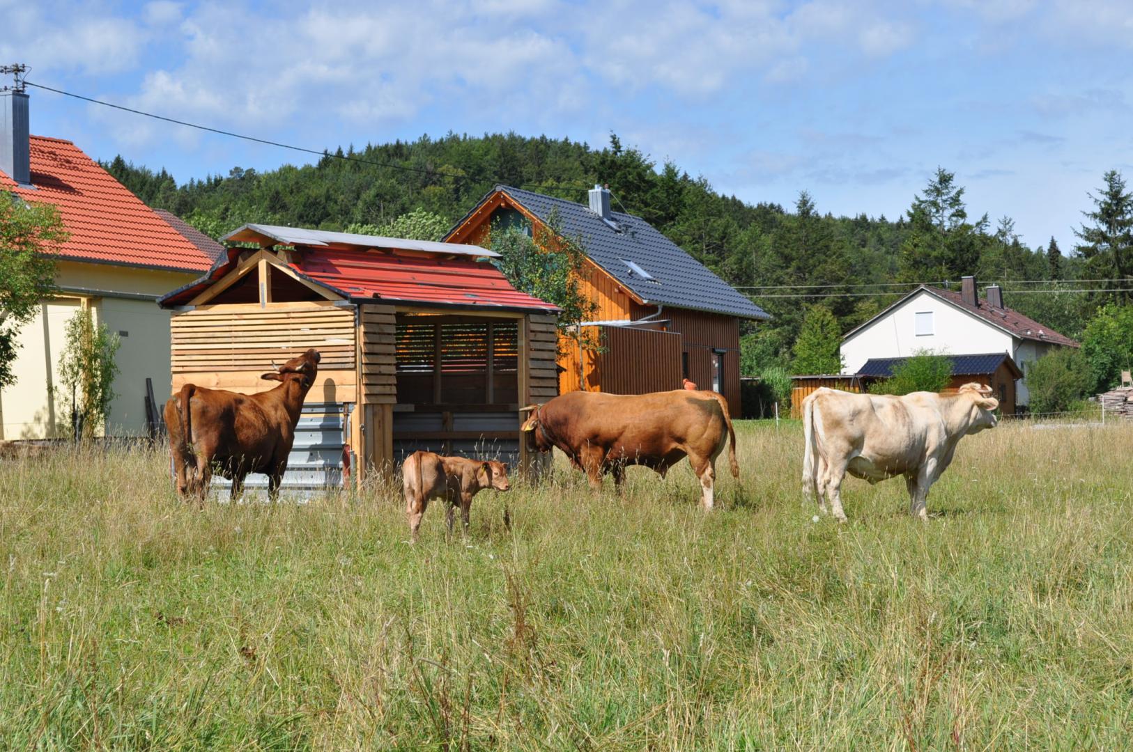 Wir vermarkten unser Rindfleisch ab Hof und verkaufen selbst gefertigte Fruchtaufstriche und Säfte von unseren Streuobstbäume.