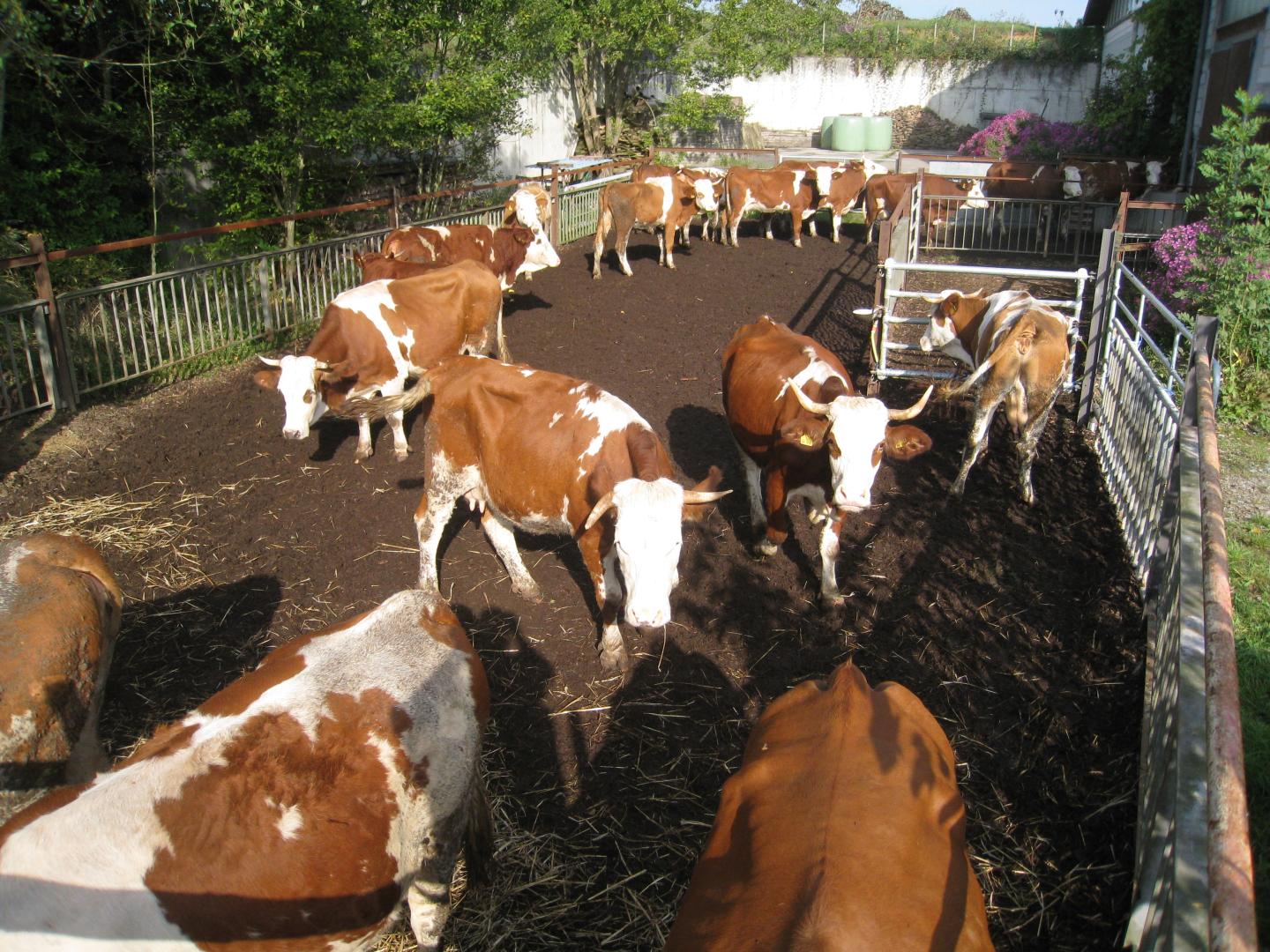 Wir bewirtschaften 26 ha am Rande des Kraichgaus. Auf unserem Feldern wächst Getreide, Kartoffeln, etwas Gemüse und Klee. Den lassen sich unsere 10 Milchkühe und ihr Nachwuchs schmecken. Daraus und aus dem Gras und den Kräutern unserer Wiesen -im Sommer frisch, im Winter als leckeres Heu- produzieren sie Milch für ihre Kälber und uns. Die Kälber dürfen bis zu einem Alter von ca. 5 Monaten 2x am Tag zu ihrer Mutter. Alle Tiere dürfen mindestens zweieinhalb bis drei Jahre bei uns bleiben. Unsere Milch gibt es entweder nach Absprache unbehandelt als Rohmilch ab Hof oder pasteurisiert an unserem Milchautomat in Helmstadt. Unseren Weizen und Roggen bekommt seit vielen Jahren die Spielberger Mühle. Die Kartoffeln und das Gemüse verkaufen wir v.a. an Naturkostläden in unserer Umgebung. Ab September bis ins Frühjahr kann man nach Absprache ab Hof bei uns Kartoffeln und je nach Verfügbarkeit auch z.B. Zwiebeln, Rote Bete, Möhren, Kürbisse... kaufen.