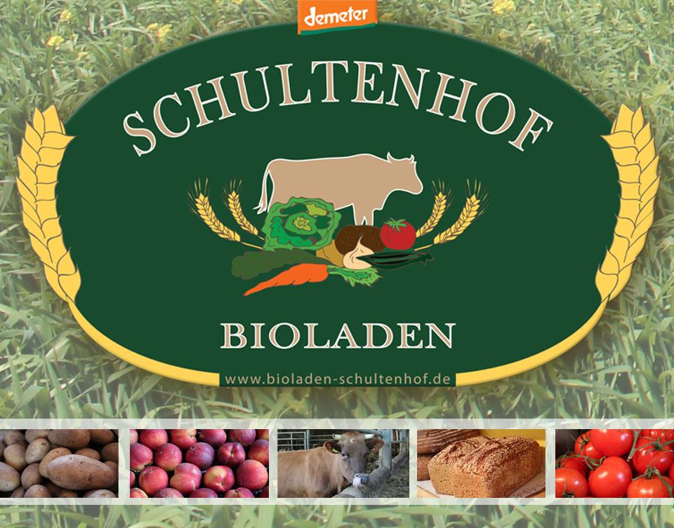 Unser "Bioladen Schultenhof" ist ein Einkaufsziel für Lebensmittel aus ökologischem Anbau. Wir verkaufen Gemüse der Saison, Kartoffeln, Brotgetreide, Fleisch, Wurst und Milch in demeter -Qualität aus eigener Erzeugung, sowie Obst, Milchprodukte, Brot und Trockenwaren aus kontrolliert biologischem Anbau.