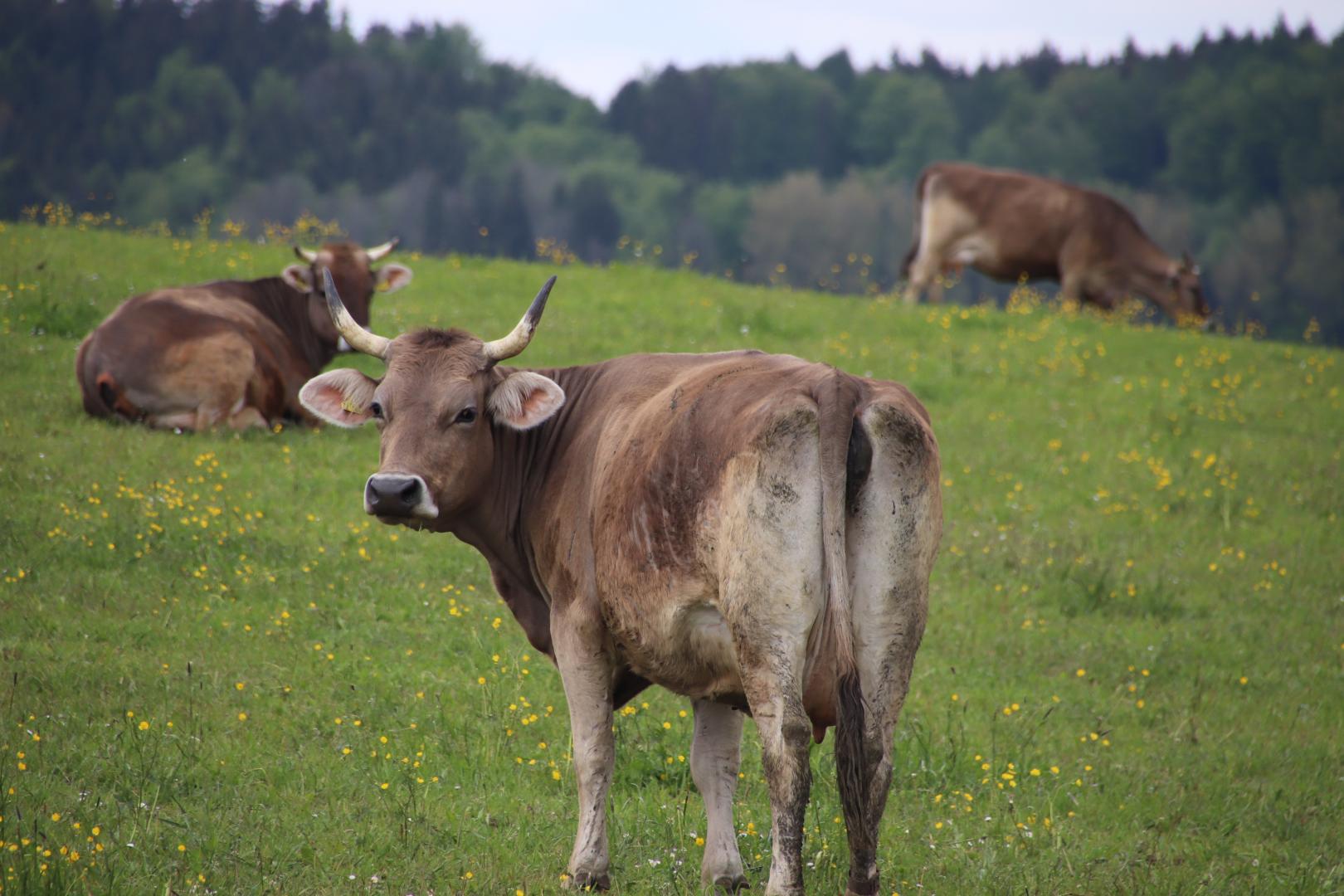 Zu unseren Betriebszweigen gehören der Milchviehstall, der Ackerbau, der Gemüsebau und die Hühnerhaltung. Rund 40 behornte Milchkühe samt Nachzucht bewohnen unseren großzügigen Freilaufstall. Im Sommer grasen die Tiere ganztägig auf umliegenden Weiden. Auch unsere Hühner im Mobilstall haben täglich frisches Grün vor dem Schnabel.