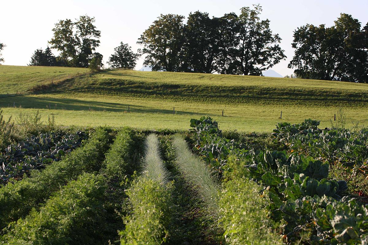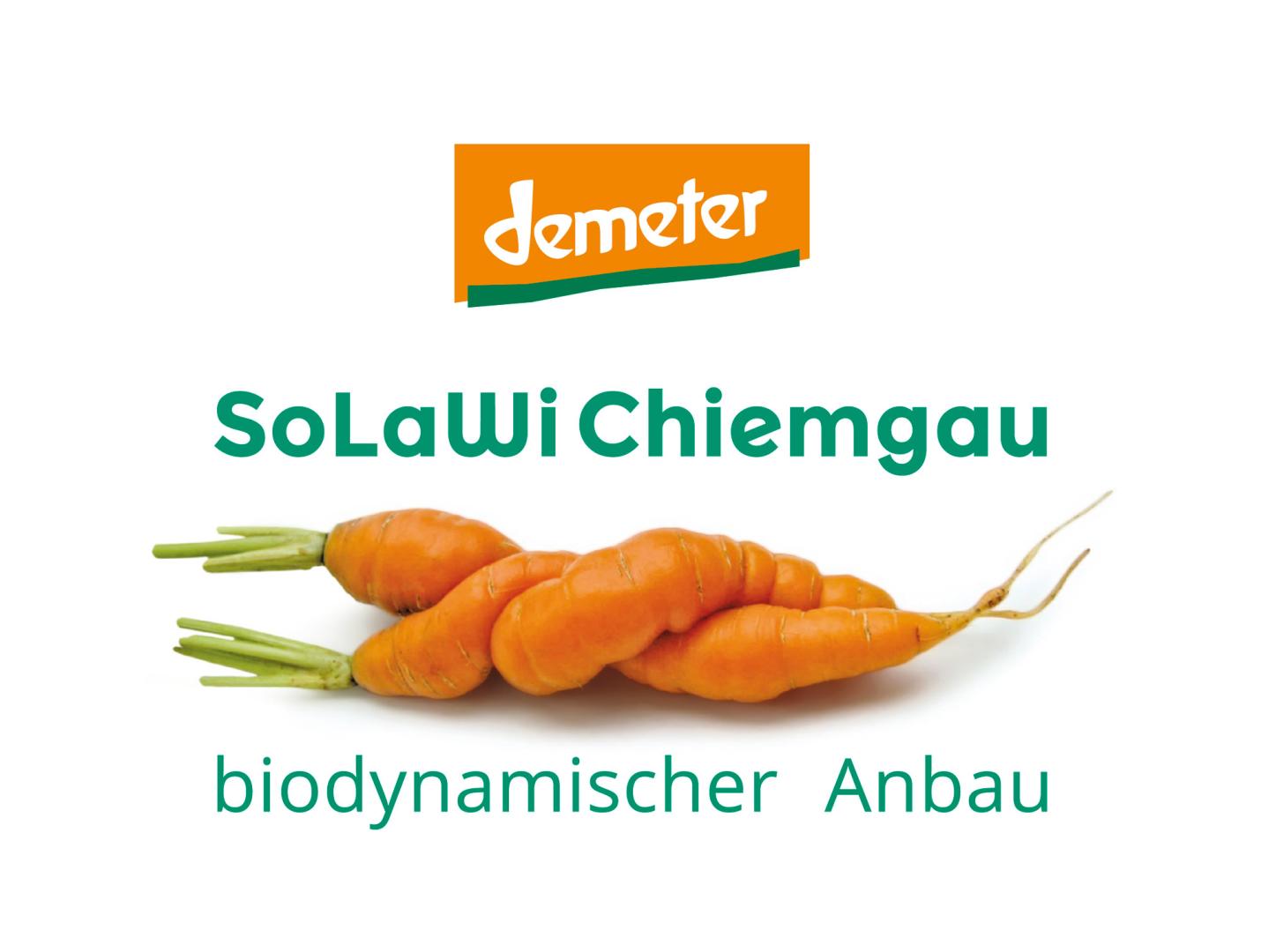Die Anbaufläche von SoLaWi Chiemgau liegt direkt bei 83329 Tettenberg in der Nähe von Otting und Waging im Rupertiwinkel in Oberbayern. Dort in der bezaubernden Umgebung des Chiemgaus wird auf 1,3 Hektar hauptsächlich Gemüse und Salat, aber auch Kräuter, Tees, und Beeren angebaut. Die Fläche ist Demeter-zertifiziert und eignet sich hervorragend für gemeinschaftliches Wirtschaften. Außerdem gehören zwei Tagwerk Wald zum Projekt und werden nach und nach in die Nutzung mit einbezogen. Auch Bienen sind ins Projektgelände integriert - sie sorgen für Befruchtung und werden darum gepflegt und in ihrer Ernährung unterstützt. Entsprechend wird die Anbaufläche mit Blühstreifen und saisonalen Blühflächen durchmischt. Es können ein oder mehrere Ernteteile erworben werden, gedacht für größere Haushalte, die Vereinbarung gilt für 10 Monate, von März bis Dezember. Ein Ernteanteil kostet monatlich 60 €, bzw. 600 € einmalig pro Wirtschaftsjahr. Ein Ernteteil entspricht etwa dem durchschnittlichen, geschätzten Verbrauch von einer erwachsenen Person oder ggf. zwei Personen, je nach individueller Gemüseverzehrgewohnheit. Es gibt drei Abholstellen, eine in der Nähe des Ackers in 2 Tettelham bei Holzhausen (Waging), eine in Traunstein und eine weitere in Nußdorf/Mögstetten bei Chieming. Dort werden die erntefrischen Produkte freitags zur Abholung bereitgestellt.