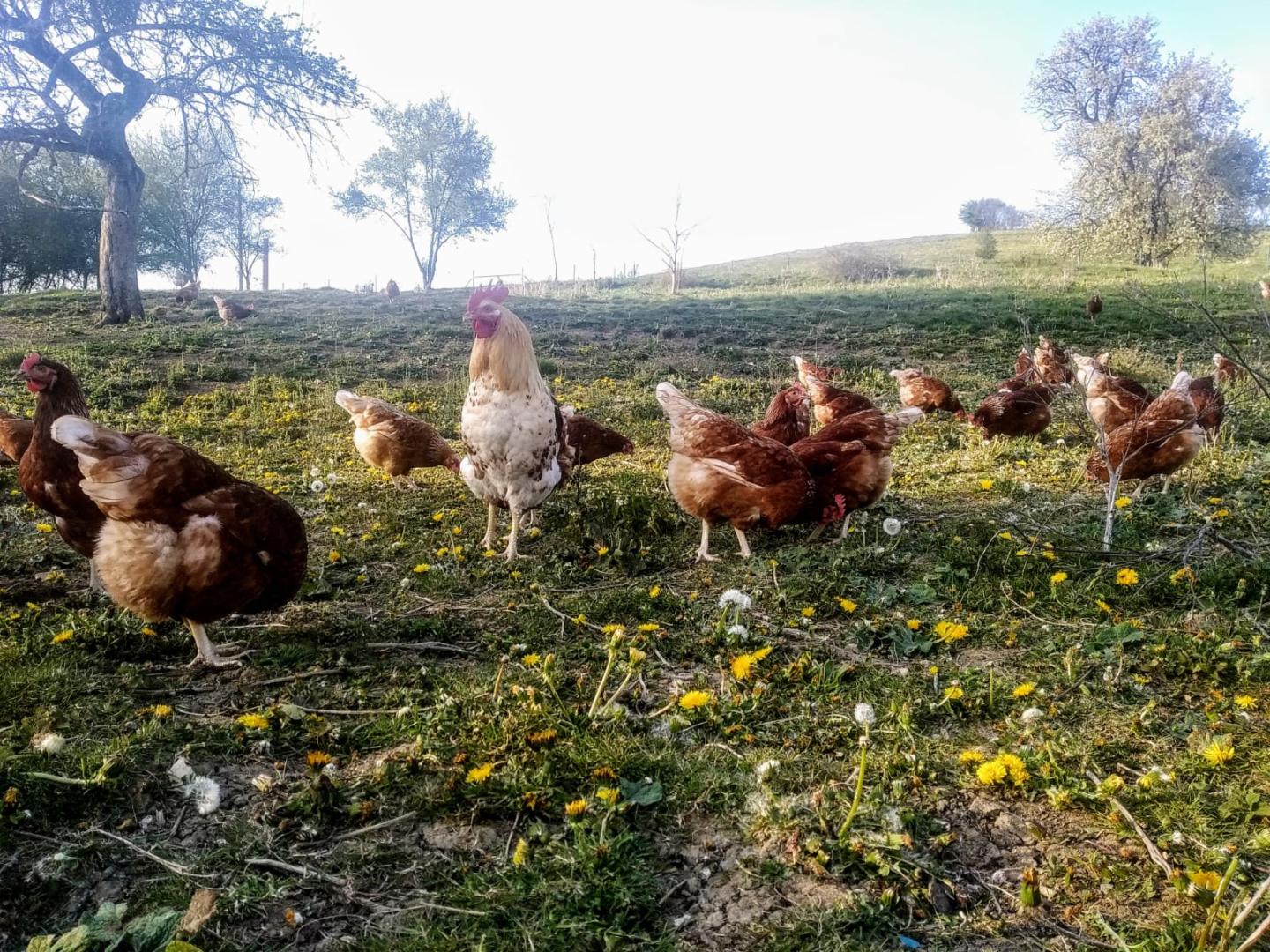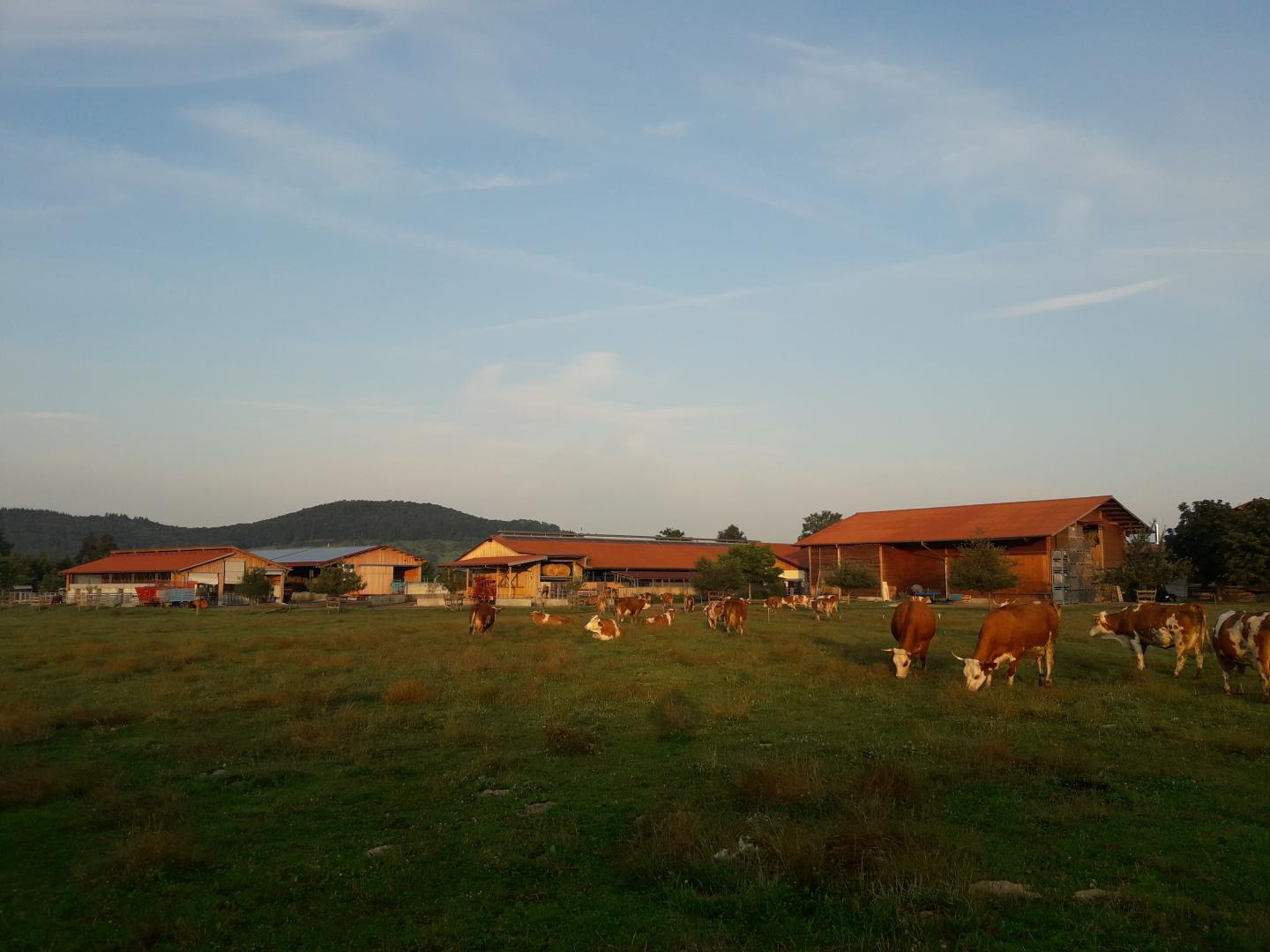 Unser Sonnenhof ist ein vielseitiger Demeter-Betrieb mit Grün- und Ackerland, auf dem Futter für die Milchkühe, Rinder, Hühner und Gänse, Getreide für die hofeigene Bäckerei, Kartoffeln und Gemüse wachsen. Auf dem zu uns gehörenden Iltishof halten wir unsere Hühner, die Gänse und ein Teil der Rinder.