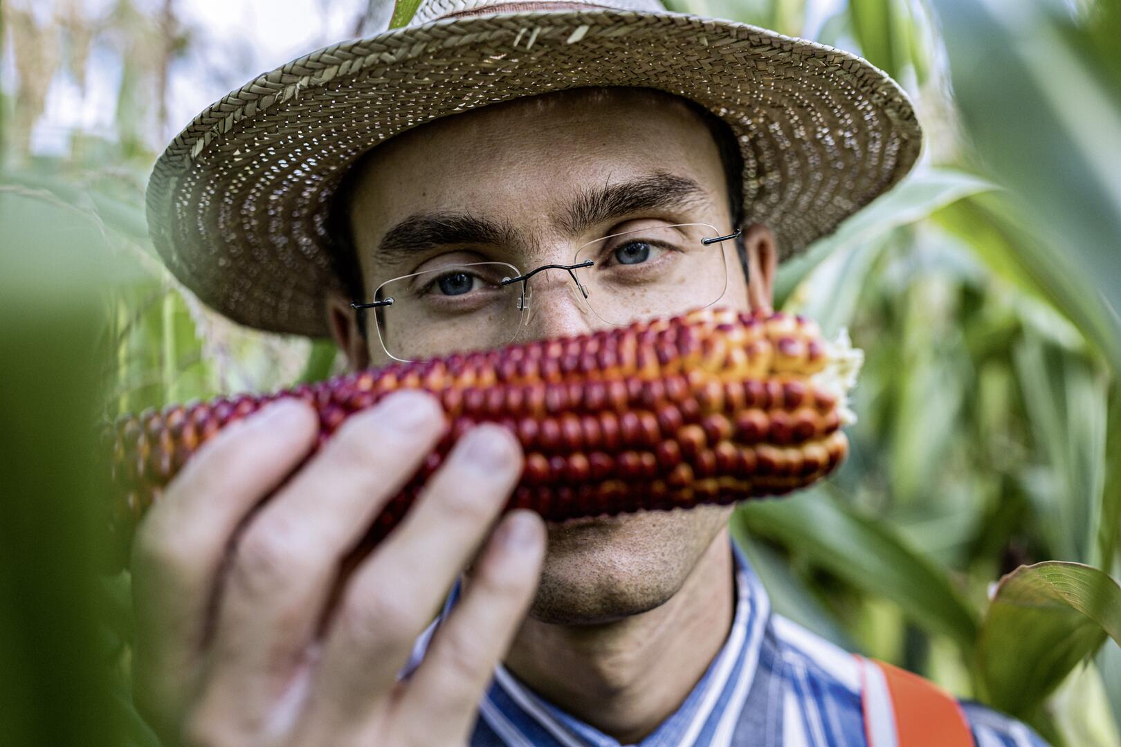 Carl Vollenweider vom Dottenfelderhof mit Maiskolben