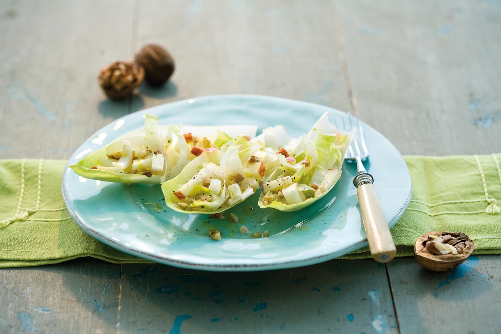 Marinade anrühren und über Chicorée und Apfel geben.