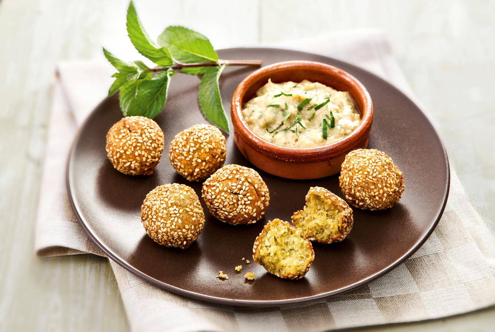 Getrocknete Kichererbsen in eine Schüssel mit ausreichend Wasser geben und 24 Stunden quellen lassen. Kichererbsen abtrocknen – sicherstellen, dass sie nicht mehr feucht sind. Kichererbsen zusammen mit gewürfelten Zwiebeln, Knoblauch, Paprika in Mixer geben. Alle anderen Zutaten dazugeben – nur etwa die Hälfte der Sesamsamen aufheben. Alles mixen, bis ein kompakter Teig entsteht. Falafelteig zu kleinen Bällchen rollen. Bällchen in den restlichen Sesamsamen rollen, sodass diese die Falafel-Oberfläche bedecken. Reichlich Öl in Pfanne erhitzen. Bällchen in die Pfanne geben, frittieren, bis Oberfläche gut gebräunt ist. Falafel auf ein Stück Küchenpapier legen, damit überschüssiges Öl absorbiert wird.