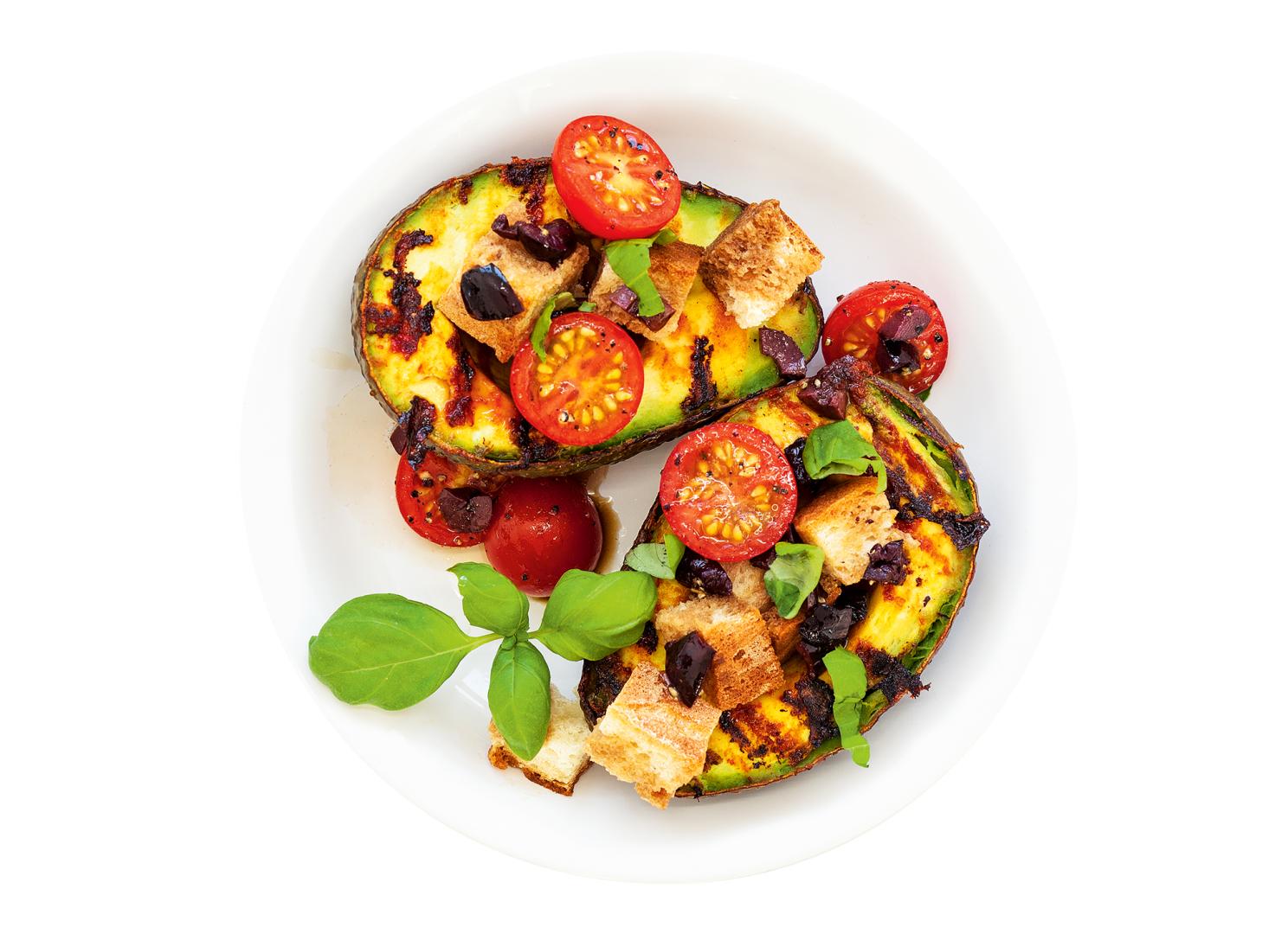 Gegrillte Avocado mit Tomaten-Brotsalat