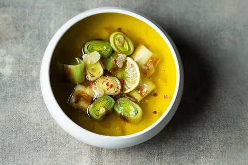 Das Öl in einer Pfanne erhitzen, die Frühlingszwiebeln darin anbraten. Die Zwiebeln abkühlen lassen. Den Feta in eine Schüssel bröckeln und mit einer Gabel erst die Orangenzesten, dann die Frühlingszwiebeln unterrühren. Mit Salz und Pfeffer abschmecken.