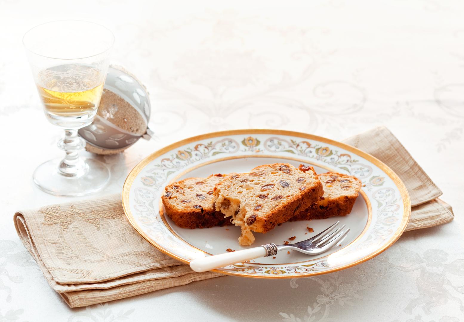 Zitronat und Orangeat am Vorabend in etwas Met einweichen. Butter, Zucker, Zitrone, Gewürze glatt rühren. Eier und Quark, dann Mehl und Backpulver dazurühren. Sultaninen, Mandeln, Zitronat und Orangeat dazugeben. 50 Minuten bei 175 °C backen.