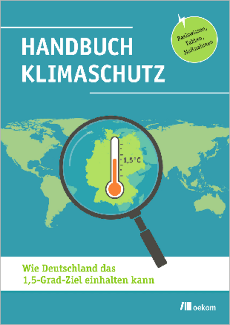 Das „Handbuch Klimaschutz. Wie Deutschland das 1,5-Grad-Ziel einhalten kann: Basiswissen, Fakten, Maßnahmen“ präsentiert die Fakten aus über 300 aktuellen Studien: Ist das Ziel des Pariser Klimaschutzabkommens überhaupt noch erreichbar? Und welche Maßnahmen sind nötig, um es umzusetzen? Herausgegeben von Mehr Demokratie e. V. und BürgerBegehren Klimaschutz, Oekom Verlag.